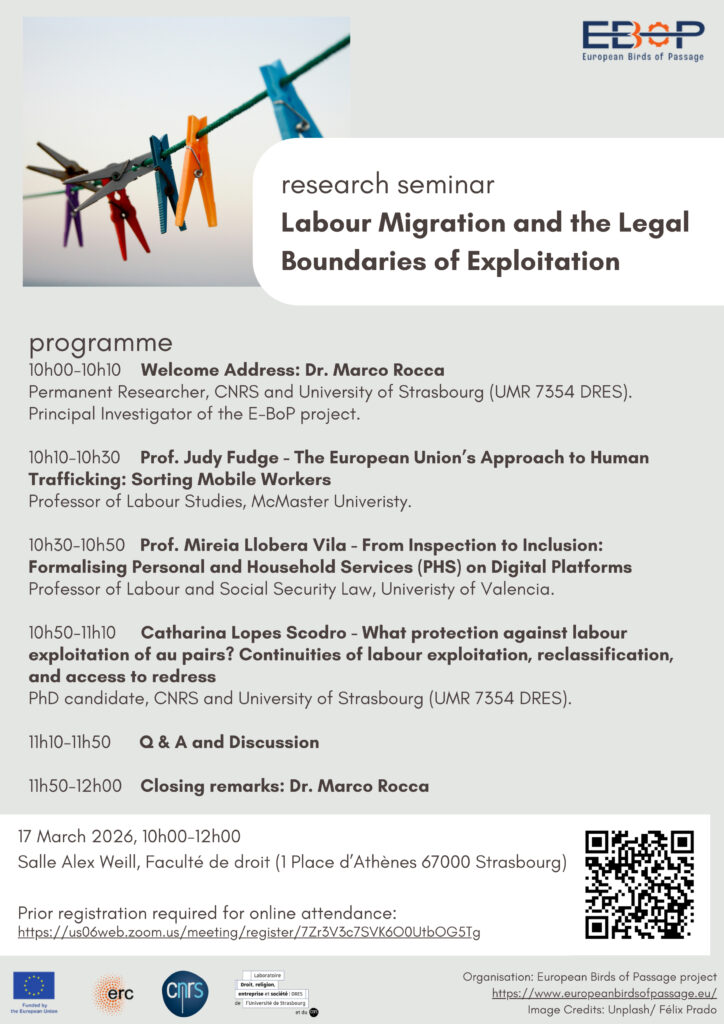 The E-BoP team is pleased to announce our next hybrid research seminar, “Labour Migration and the Legal Boundaries of Exploitation.” The event will take place in Strasbourg and online (Zoom) on 17 March 2026, from 10AM to noon (CET). This seminar brings together leading scholars to reflect on how European legal frameworks define the line […]